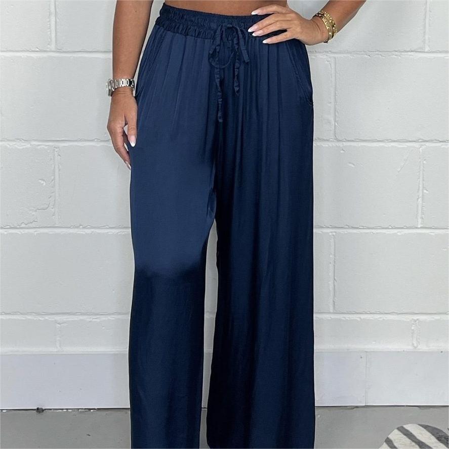 GLATT STOFF: Laget av et glatt stoff, utstråler disse buksene et moderne og polert utseende, og legger til et snev av sofistikasjon til ethvert antrekk.