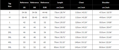 Størrelse: S, M, L, XL, 2XL, 3XL